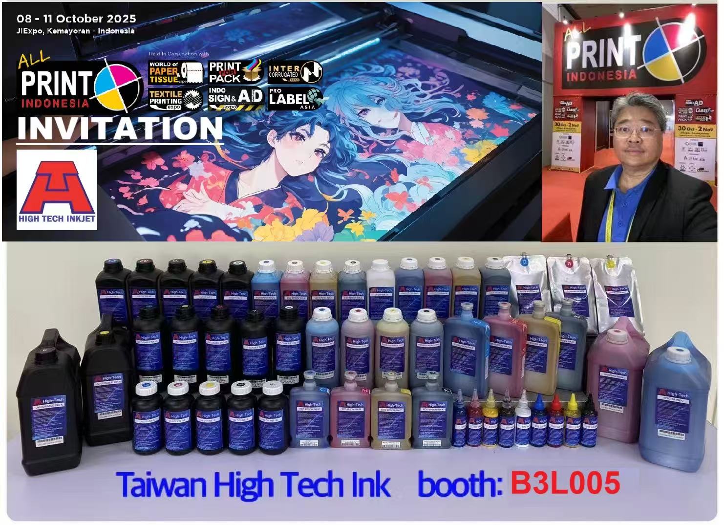 It's welcome to visit Taiwan High Tech ink, see you then~ *Event: Allprint exhibition *Place: JIExpo Kemayoran, Jakarta *Booth : B3L005, High-Tech Ink *Date:8-11 Oct, 2025